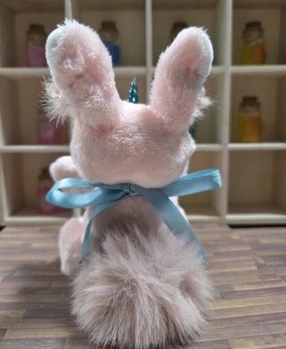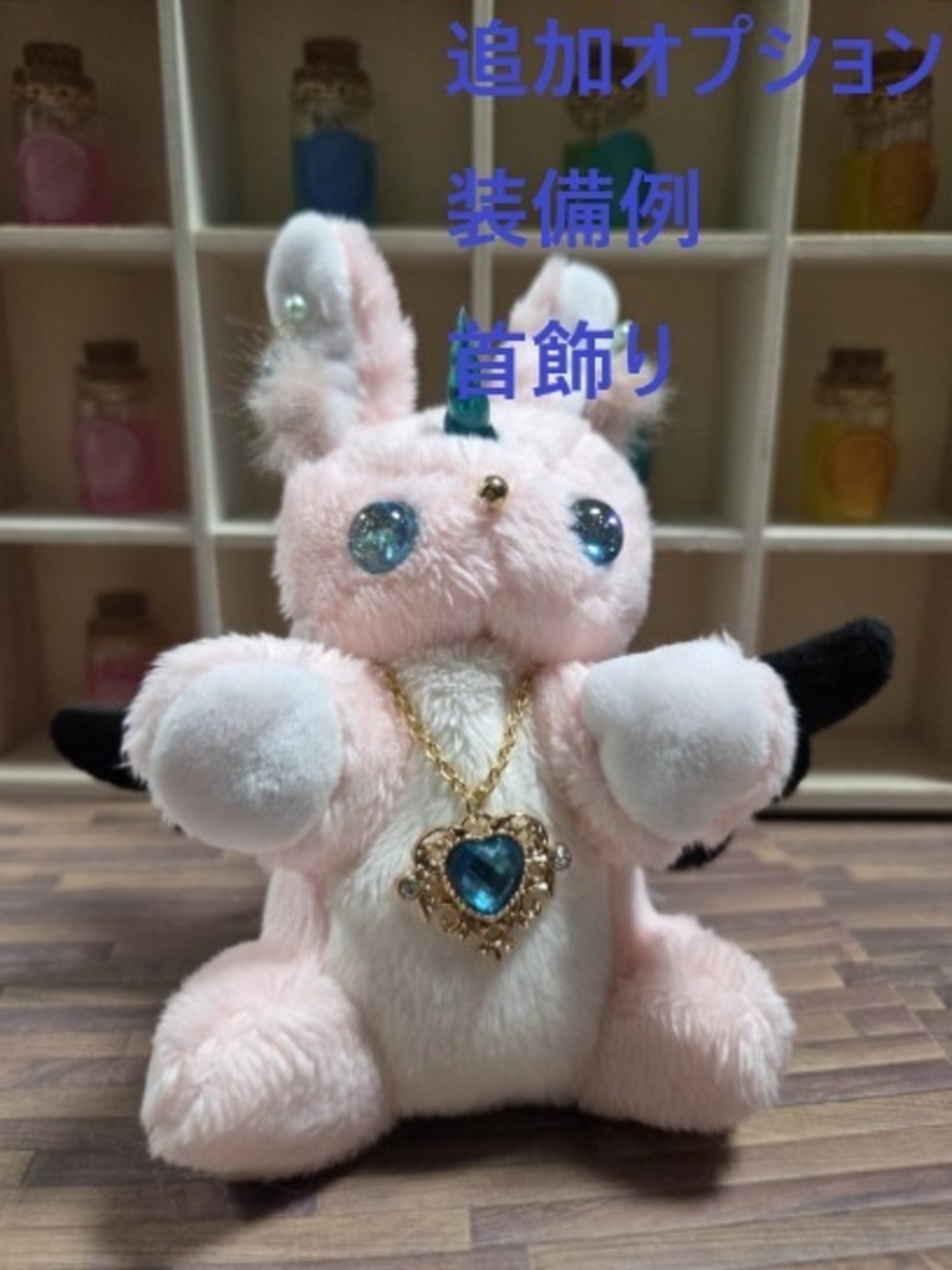 型紙から制作し本体はすべて手縫いで製作していて、角と瞳はレジンで自作しています。