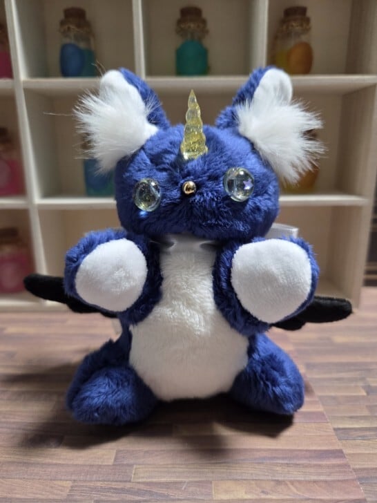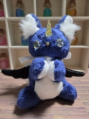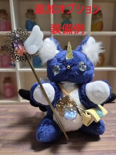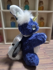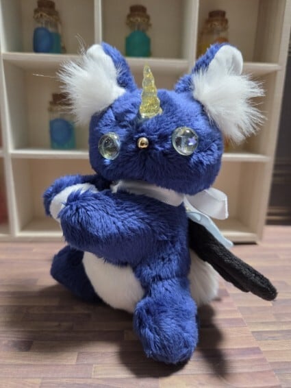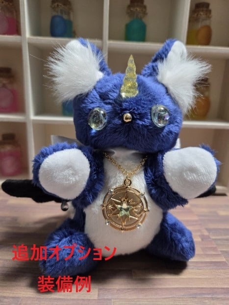 型紙から制作し本体はすべて手縫いで製作していて、角と瞳はレジンで自作しています。